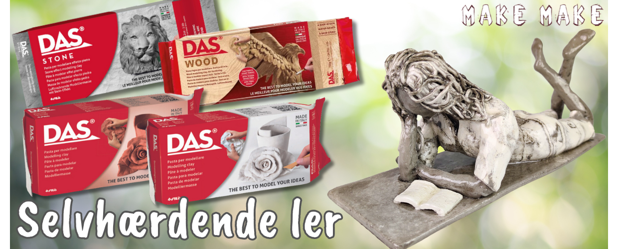 Det er også under Skulpturmaterialer at du kan finde DAS Selvhærdende ler. Med selvhærdende ler kan du modellere skulpturer, små figurer, lave mosaikker og meget mere.