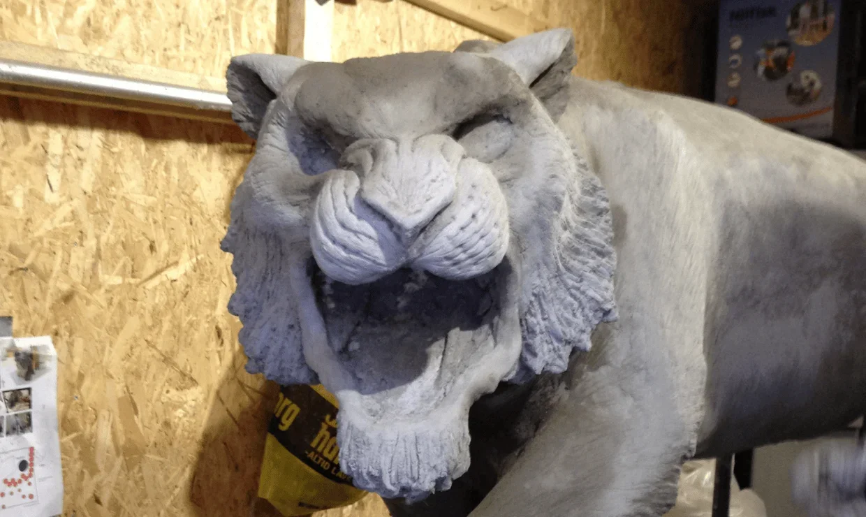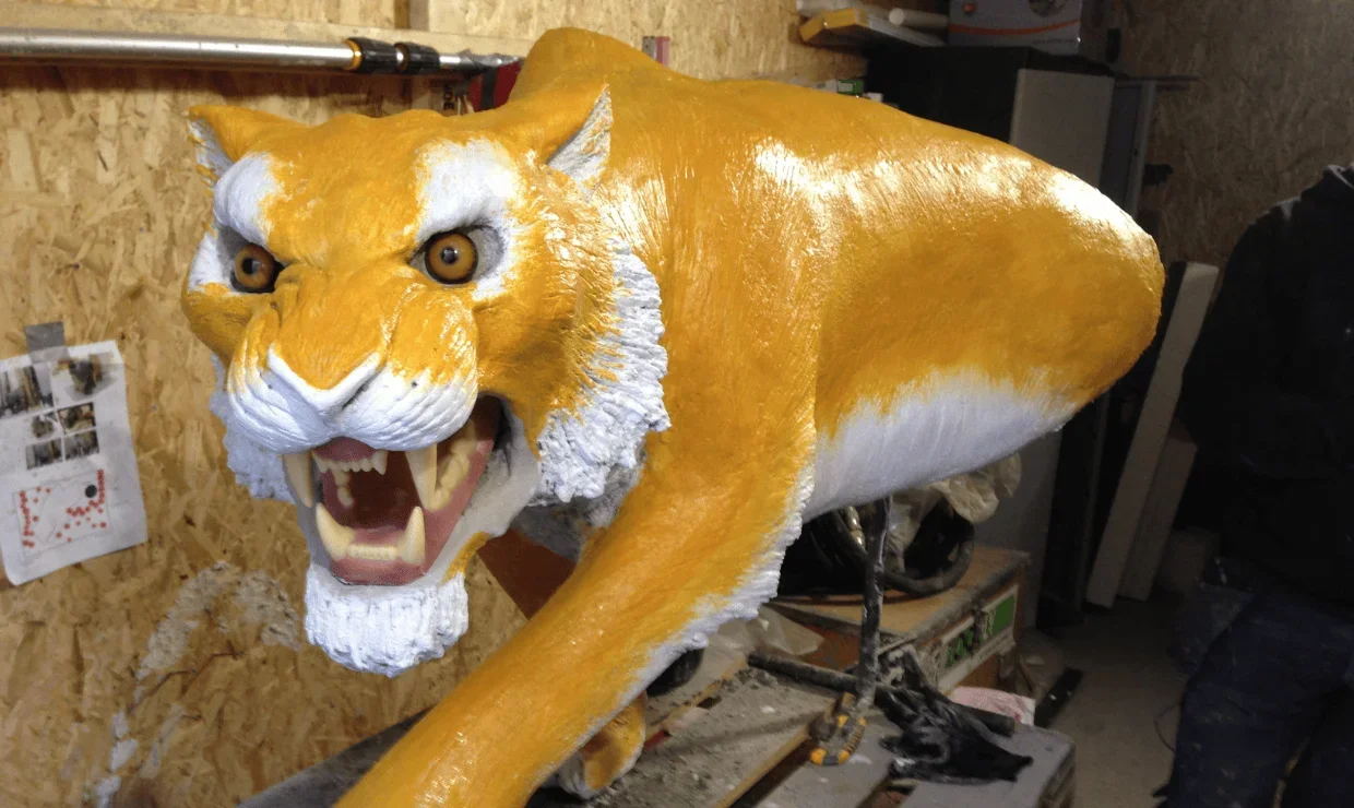 For at lave tigeren er der først lavet en grundform i flamingo. Herefter er tigeren belagt med dekorationsbeton og detaljer som struktur i pelsen, markeret pande, rynker og markering af knurhår er lavet i beton via. håndmodellering og brug af forskellige værktøjer.