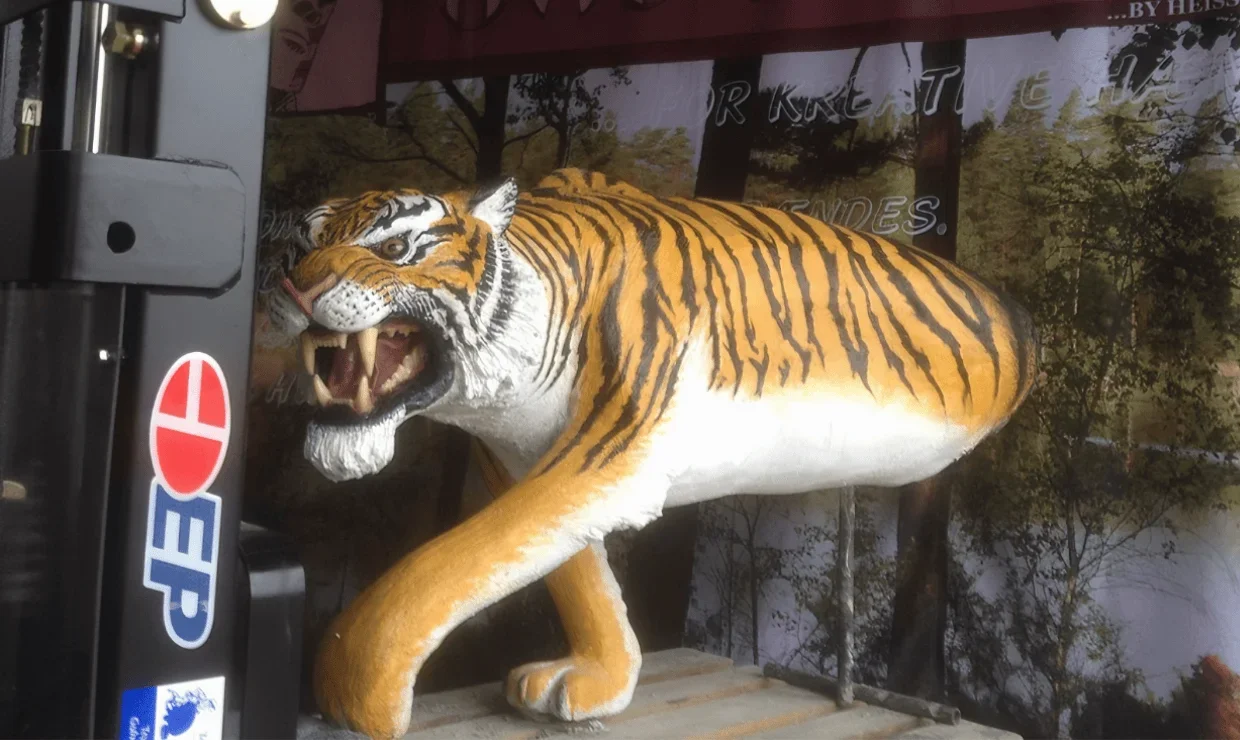 Tiger lavet i dekorationsbeton til udstilling i København Zoo