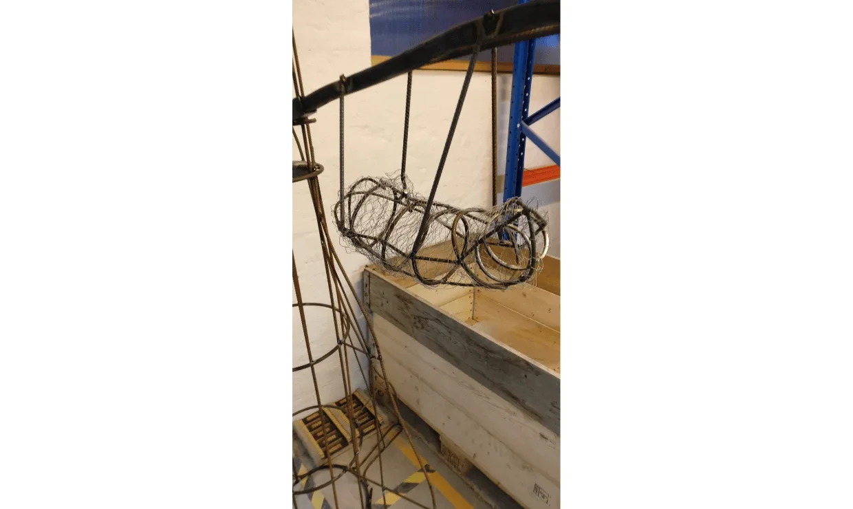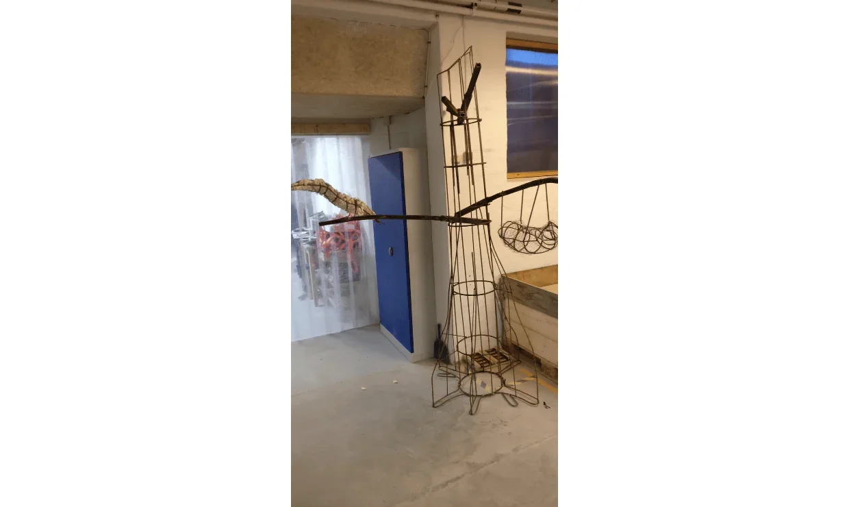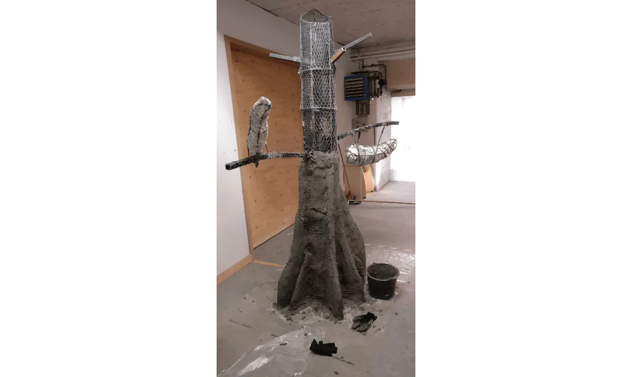 Som det kan ses på billederne herunder er træet bygget op i et jernskelet, belagt med hønsetrådsnet.