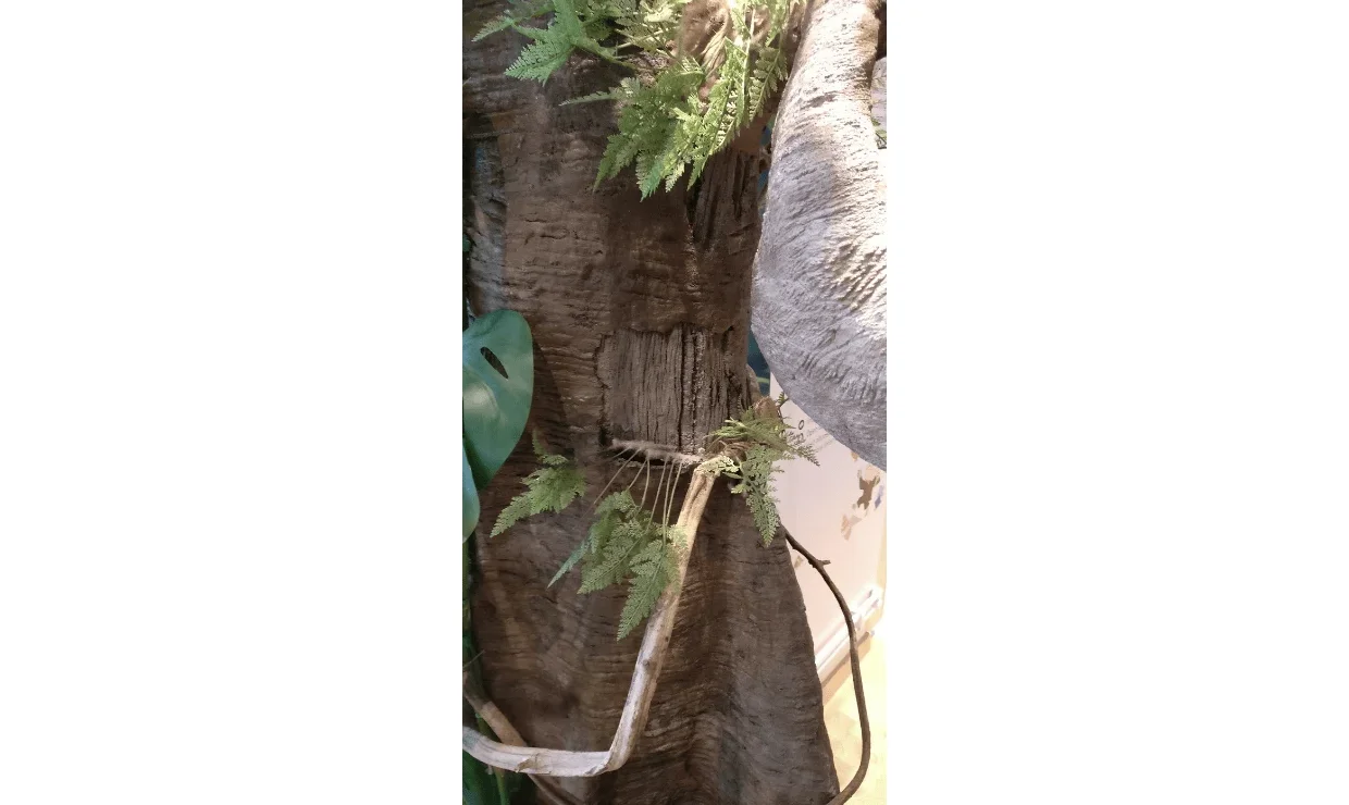 Herefter er der lagt dekorationsbeton på af to omgange. Det første lag kaldes konstruktionslaget, og sikrer en jævn overflade, inden næste lag, dekorationslaget, lægges på. I dekorationslaget laves alle detaljerne, såsom barkstrukturen, rillerne i vedet, detaljer på dovendyr og tukan m.m.